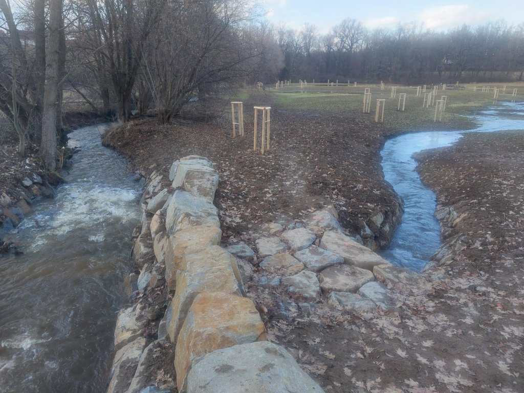 Účelem byla úprava vodního režimu lokality formou revitalizačních úprav (vybudování nového revitalizovaného koryta toku v pravobřežní nivě o délce 241 m, vč. modelace sníženin o ploše 2 513 m2. Dále byly vytvořeny tůně a mokřady – komplex 22 ks o ploše 4 188 m2. Stávající upravené koryto bylo vymělčeno a v jeho trase byly vybudovány 3 průsakové přehrážky z lomového kamene pro stabilizaci nivelety. Součástí projektu byla i instalace mrtvého dřeva (kmenů) z pokácených stromů a výsadba stromů (50 ks).